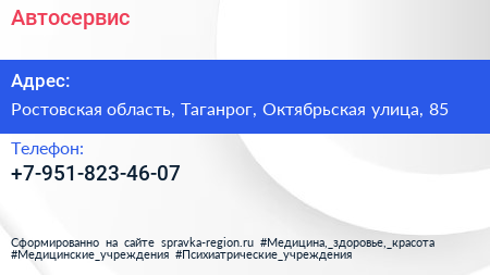 Автосервис по адресу Ростовская область, Таганрог, Октябрьская улица, 85 в дальнейшем Организация, размещена в следующих категориях: