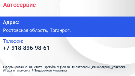 Автосервис по адресу Ростовская область, Таганрог, в дальнейшем Организация, размещена в следующих категориях: