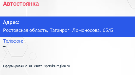 Автостоянка по адресу Ростовская область, Таганрог, Ломоносова, 65/Б в дальнейшем Организация, размещена в следующих категориях: