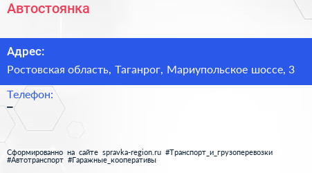 Автостоянка по адресу Ростовская область, Таганрог, Мариупольское шоссе, 3 в дальнейшем Организация, размещена в следующих категориях: