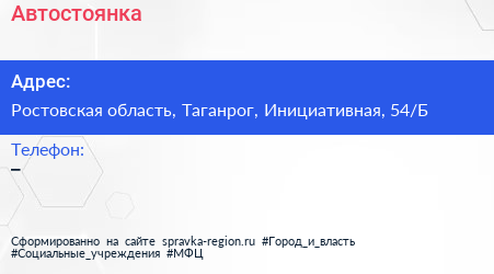 Автостоянка по адресу Ростовская область, Таганрог, Инициативная, 54/Б в дальнейшем Организация, размещена в следующих категориях: