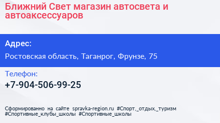Ближний Свет, магазин автосвета и автоаксессуаров по адресу Ростовская область, Таганрог, Фрунзе, 75 в дальнейшем Организация, размещена в следующих категориях: