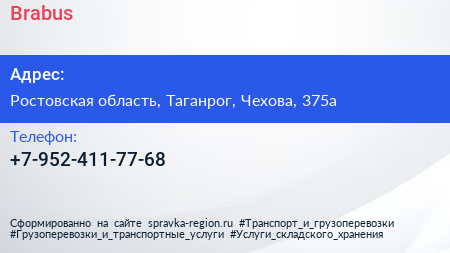 Brabus по адресу Ростовская область, Таганрог, Чехова, 375а в дальнейшем Организация, размещена в следующих категориях: