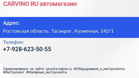CARVINO.RU, автомагазин по адресу Ростовская область, Таганрог, Кузнечная, 142/1 в дальнейшем Организация, размещена в следующих категориях: