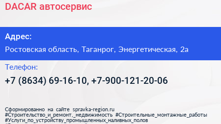 DACAR, автосервис по адресу Ростовская область, Таганрог, Энергетическая, 2а в дальнейшем Организация, размещена в следующих категориях: