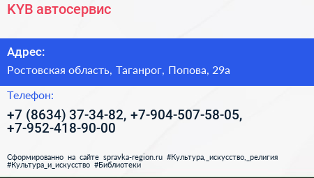 KYB, автосервис по адресу Ростовская область, Таганрог, Попова, 29а в дальнейшем Организация, размещена в следующих категориях: