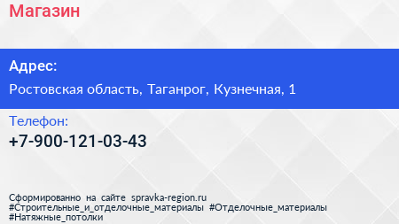 Магазин по адресу Ростовская область, Таганрог, Кузнечная, 1 в дальнейшем Организация, размещена в следующих категориях:
