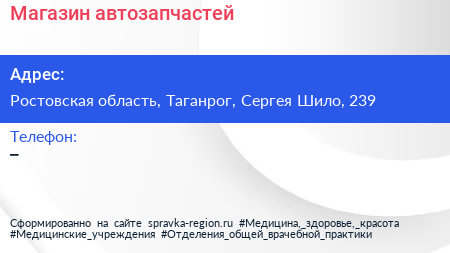 Магазин автозапчастей по адресу Ростовская область, Таганрог, Сергея Шило, 239 в дальнейшем Организация, размещена в следующих категориях: