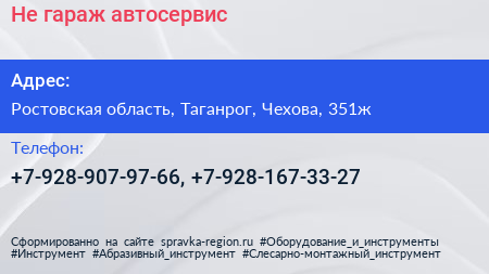 Не гараж, автосервис по адресу Ростовская область, Таганрог, Чехова, 351ж в дальнейшем Организация, размещена в следующих категориях: