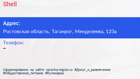Shell по адресу Ростовская область, Таганрог, Менделеева, 123а в дальнейшем Организация, размещена в следующих категориях: