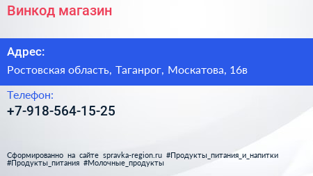 Винкод, магазин по адресу Ростовская область, Таганрог, Москатова, 16в в дальнейшем Организация, размещена в следующих категориях: