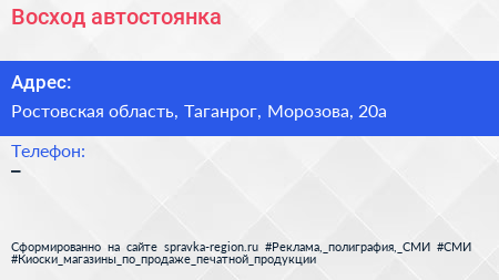 Восход, автостоянка по адресу Ростовская область, Таганрог, Морозова, 20а в дальнейшем Организация, размещена в следующих категориях: