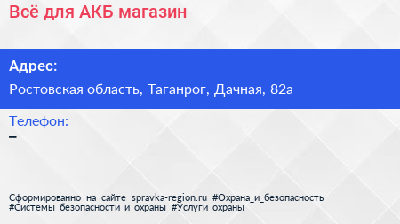Всё для АКБ, магазин по адресу Ростовская область, Таганрог, Дачная, 82а в дальнейшем Организация, размещена в следующих категориях: