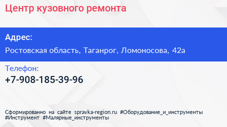 Центр кузовного ремонта по адресу Ростовская область, Таганрог, Ломоносова, 42а в дальнейшем Организация, размещена в следующих категориях: