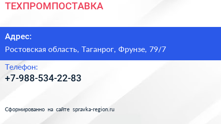 ТЕХПРОМПОСТАВКА по адресу Ростовская область, Таганрог, Фрунзе, 79/7 в дальнейшем Организация, размещена в следующих категориях: