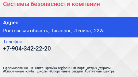 Системы безопасности, компания по адресу Ростовская область, Таганрог, Ленина, 222а в дальнейшем Организация, размещена в следующих категориях: