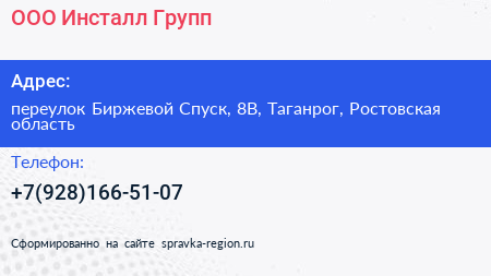 ООО Инсталл Групп по адресу переулок Биржевой Спуск, 8В, Таганрог, Ростовская область в дальнейшем Организация, размещена в следующих категориях: