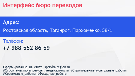 Интерфейс, бюро переводов по адресу Ростовская область, Таганрог, Пархоменко, 58/1 в дальнейшем Организация, размещена в следующих категориях: