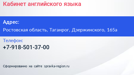 Кабинет английского языка по адресу Ростовская область, Таганрог, Дзержинского, 165а в дальнейшем Организация, размещена в следующих категориях: