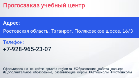 Прогосзаказ, учебный центр по адресу Ростовская область, Таганрог, Поляковское шоссе, 16/3 в дальнейшем Организация, размещена в следующих категориях: