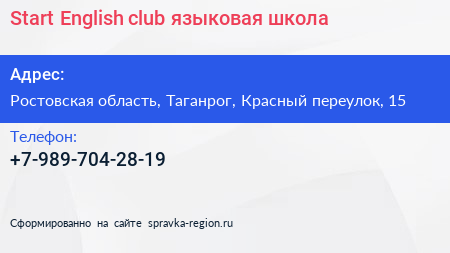 Start English club, языковая школа по адресу Ростовская область, Таганрог, Красный переулок, 15 в дальнейшем Организация, размещена в следующих категориях: