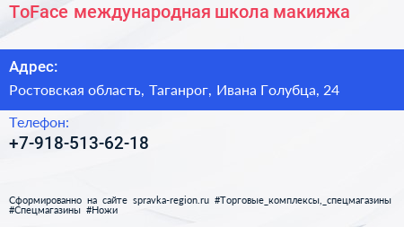 ToFace, международная школа макияжа по адресу Ростовская область, Таганрог, Ивана Голубца, 24 в дальнейшем Организация, размещена в следующих категориях: