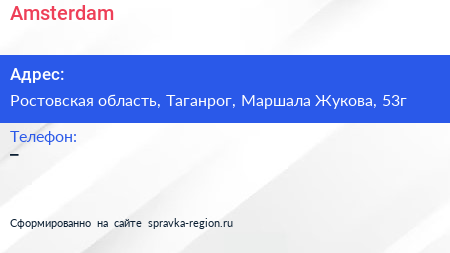 Amsterdam по адресу Ростовская область, Таганрог, Маршала Жукова, 53г в дальнейшем Организация, размещена в следующих категориях: