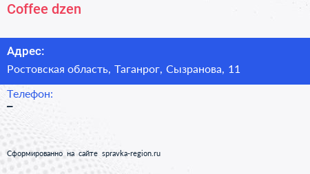 Coffee dzen по адресу Ростовская область, Таганрог, Сызранова, 11 в дальнейшем Организация, размещена в следующих категориях:
