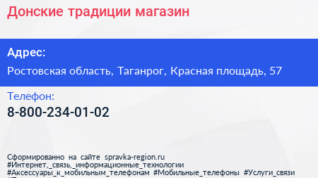 Донские традиции, магазин по адресу Ростовская область, Таганрог, Красная площадь, 57 в дальнейшем Организация, размещена в следующих категориях: