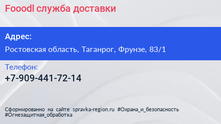 Fooodl, служба доставки по адресу Ростовская область, Таганрог, Фрунзе, 83/1 в дальнейшем Организация, размещена в следующих категориях: