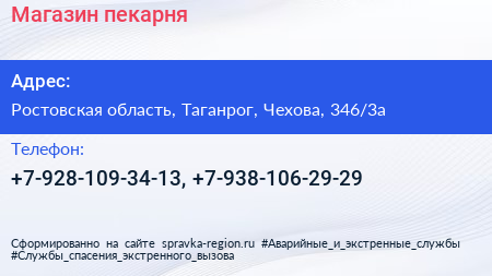 Магазин-пекарня по адресу Ростовская область, Таганрог, Чехова, 346/3а в дальнейшем Организация, размещена в следующих категориях: