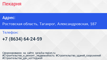 Пекарня по адресу Ростовская область, Таганрог, Александровская, 187 в дальнейшем Организация, размещена в следующих категориях: