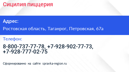 Сицилия, пиццерия по адресу Ростовская область, Таганрог, Петровская, 67а в дальнейшем Организация, размещена в следующих категориях: