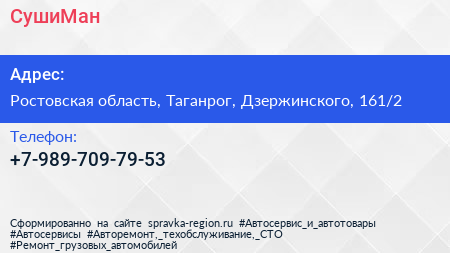 СушиМан по адресу Ростовская область, Таганрог, Дзержинского, 161/2 в дальнейшем Организация, размещена в следующих категориях: