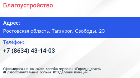 Благоустройство по адресу Ростовская область, Таганрог, Свободы, 20 в дальнейшем Организация, размещена в следующих категориях: