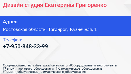 Дизайн-студия Екатерины Григоренко по адресу Ростовская область, Таганрог, Кузнечная, 1 в дальнейшем Организация, размещена в следующих категориях: