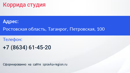 Коррида, студия по адресу Ростовская область, Таганрог, Петровская, 100 в дальнейшем Организация, размещена в следующих категориях: