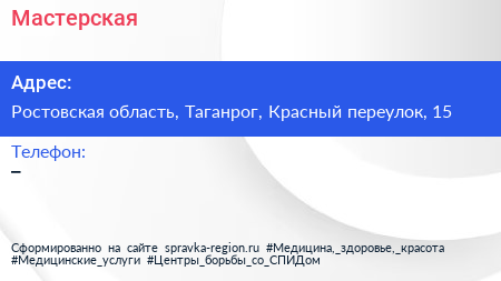 Мастерская по адресу Ростовская область, Таганрог, Красный переулок, 15 в дальнейшем Организация, размещена в следующих категориях: