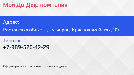Мой-До-Дыр, компания по адресу Ростовская область, Таганрог, Красноармейская, 30 в дальнейшем Организация, размещена в следующих категориях: