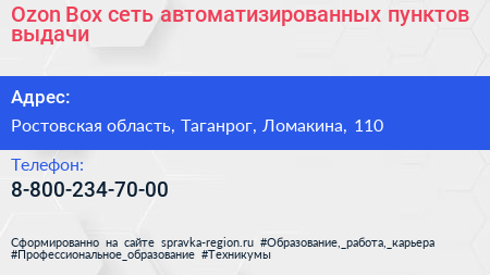 Ozon Box, сеть автоматизированных пунктов выдачи по адресу Ростовская область, Таганрог, Ломакина, 110 в дальнейшем Организация, размещена в следующих категориях: