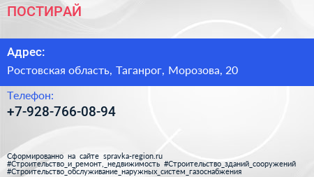 ПОСТИРАЙ по адресу Ростовская область, Таганрог, Морозова, 20 в дальнейшем Организация, размещена в следующих категориях: