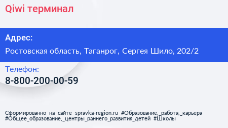Qiwi, терминал по адресу Ростовская область, Таганрог, Сергея Шило, 202/2 в дальнейшем Организация, размещена в следующих категориях: