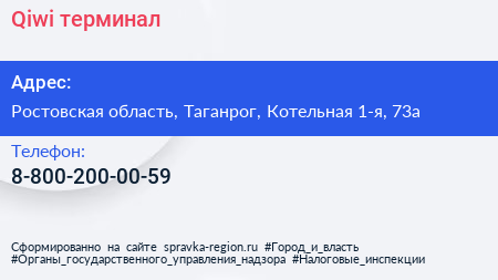 Qiwi, терминал по адресу Ростовская область, Таганрог, Котельная 1-я, 73а в дальнейшем Организация, размещена в следующих категориях: