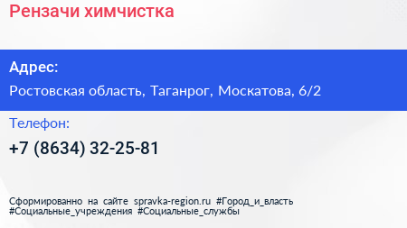 Рензачи, химчистка по адресу Ростовская область, Таганрог, Москатова, 6/2 в дальнейшем Организация, размещена в следующих категориях: