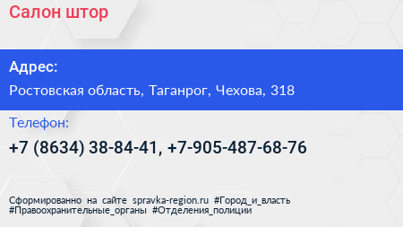 Салон штор по адресу Ростовская область, Таганрог, Чехова, 318 в дальнейшем Организация, размещена в следующих категориях: