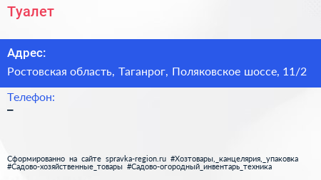 Туалет по адресу Ростовская область, Таганрог, Поляковское шоссе, 11/2 в дальнейшем Организация, размещена в следующих категориях: