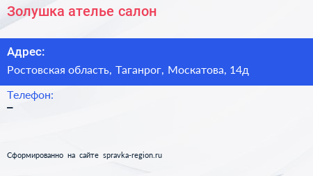 Золушка, ателье-салон по адресу Ростовская область, Таганрог, Москатова, 14д в дальнейшем Организация, размещена в следующих категориях: