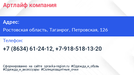 Артлайф, компания по адресу Ростовская область, Таганрог, Петровская, 126 в дальнейшем Организация, размещена в следующих категориях: