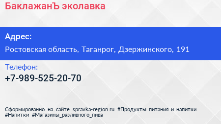 БаклажанЪ, эколавка по адресу Ростовская область, Таганрог, Дзержинского, 191 в дальнейшем Организация, размещена в следующих категориях: