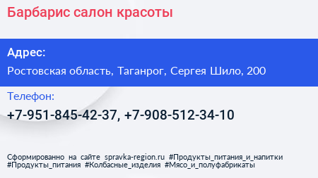 Барбарис, салон красоты по адресу Ростовская область, Таганрог, Сергея Шило, 200 в дальнейшем Организация, размещена в следующих категориях:
